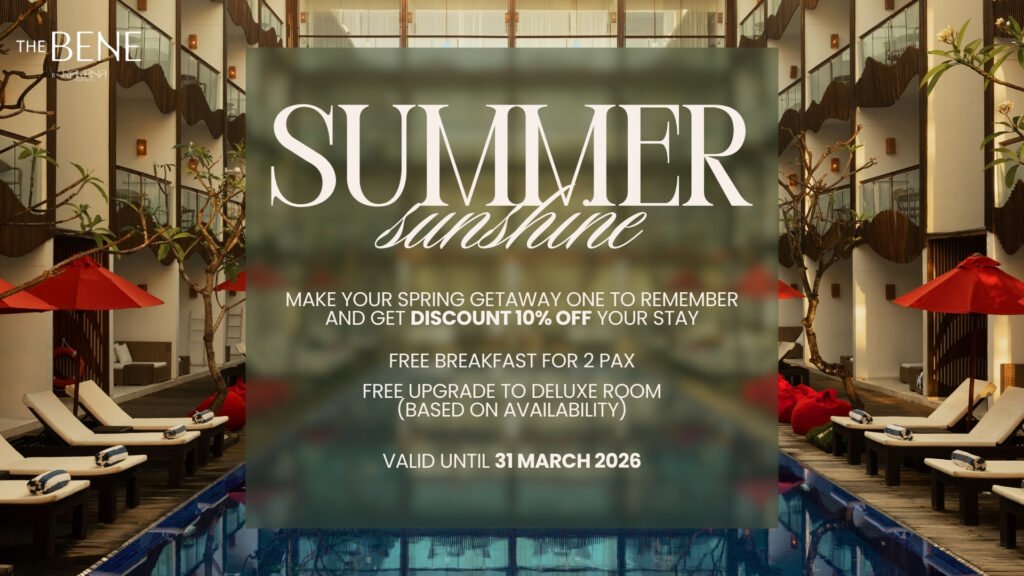 Experience the perfect holiday in Kuta, Bali with The Bene Hotel. Our modern, spacious and stylish accommodation offers guests comfort and convenience, while our charming staff ensures that your stay is nothing short of perfect. Enjoy all the amenities that The Bene Hotel has to offer, including a swimming pool, restaurant and bar, massage spa center, and much more!